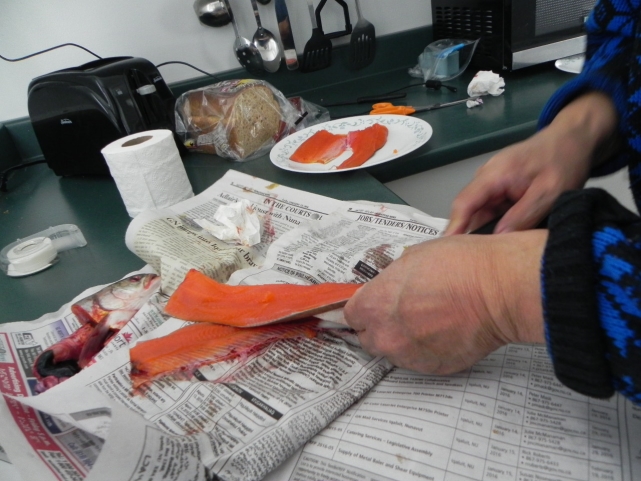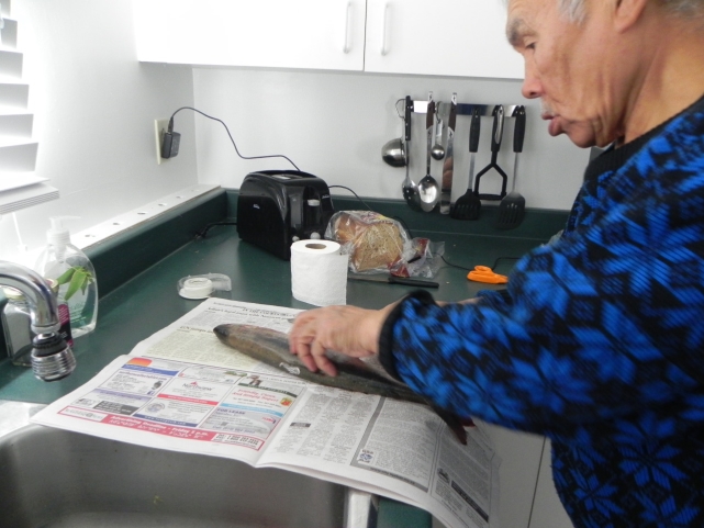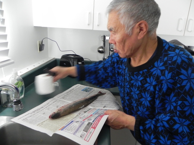 2016-05-02 Charlie Alaku prépare chez nous l'ombrelle chevalière (l'artic char )