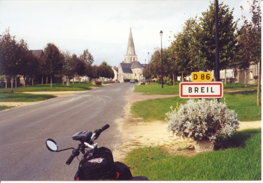 L es 48 km du Lude au Mans sont sans histoire.J’avais espéré coucher au Mans, mais aucun camping n’est ouvert; l’Office du tourisme me confirme que celui de Conlie sur la D304 l’est. Ce qui me sourit moins, c’est qu’il est à 22 km au nord-ouest du Mans, en dehors de la route d’Alençon. Mais je n’ai pas le choix. Le camping municipal de la Gironde est situé au pied de la localité sise au sommet d’une colline. Aucune présence à l’entrée. Il est très beau, mais les services sont coupés, sauf un robinet à l’extérieur. Je choisis un terrain entouré de haies. J’avais vu un Super U à l’entrée du bourg, j’y retourne pour faire mon marché de la journée 117,80 FF (24,03$). Au souper, j’ai de la compagnie, un jeune chat affamé qui s’ennuie probablement des touristes d’été. J’accepte de partager ma baguette de pain avec lui.
