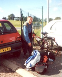 4 octobre Je quitte Châteauneuf à 8 h 30, toujours sur la piste cyclable qui longe la Loire. Plus plat que ça, c’est impossible. Le temps est nuageux; on annonce de la pluie. J’espère me rendre à Orléans avant la pluie. Il me reste une vingtaine de km. Je fais un bref arrêt à Jargeau, ville importante de la randonnée Jeanne-d’Arc. C'est le 12 juin 1429 que Jeanne d'Arc y chasse les Anglais avec 5000 hommes. Durant l’escalade de la muraille, elle sera blessée à la tête par une grosse pierre. Sur la route d’Orléans, chemin très élevé, surplombant même les toits de maisons, je rencontre une classe-nature sur le bord de la Loire. L’enseignant m’explique que Napoléon III en 1840 avait ordonné la construction de cette digue justement pour contrôler le débordement de la Loire. Ouvrage titanesque à cette époque! Cette piste cyclable me conduit au cœur d’Orléans, traversant le Loiret et la Loire. Premier réflexe: l’Office du tourisme pour m’informer du camping et du centre Jeanne d’Arc. Je règle d’abord le camping, vu la menace de pluie; il est situé à 8 km du centre-ville, à Olivet, très bons services, propre. C’est un camping municipal à 2 étoiles: 27.50 FF. Je monte la tente, dîne et, vers 14 h 30, je retourne au centre-ville où je visite d’abord la maison où Jeanne d’Arc a logé lors de son séjour à Orléans. Vidéo sur la vie de Jeanne d’Arc et excellent «son et lumière» à partir de maquettes illustrant la prise d’Orléans. De là, la réceptionniste me prend un rendez-vous avec Olivier Bouzy du Centre Jeanne d’Arc, à qui j’avais déjà écrit par courriel au Québec. Je l’ai rencontré un bon trois quarts d’heure, échangeant sur le livre de Caritini que j’avais lu avant de partir et dans lequel il trouve beaucoup d’erreurs sur les faits de Jeanne d’Arc.