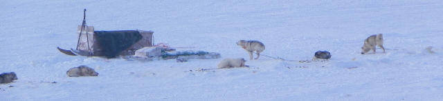 Du restaurant-cuisine de l'hôtel, on peut apercevoir au loin des chiens de traîneaux en attente d'une course. ![]() |