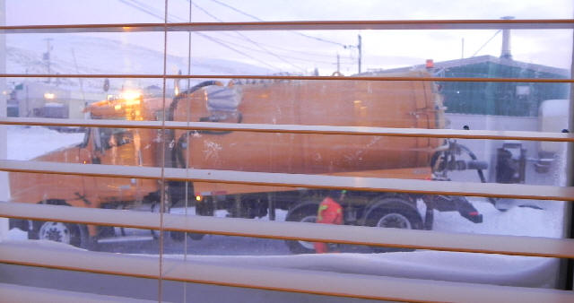 la nuit à l'hôtel de Puvirnituq: une crevaison à l'atterrissage.![]() |