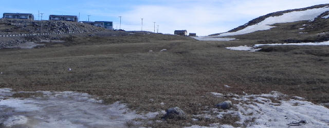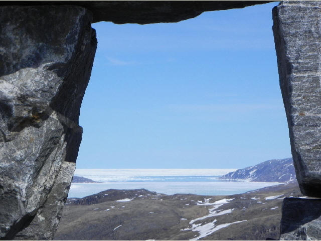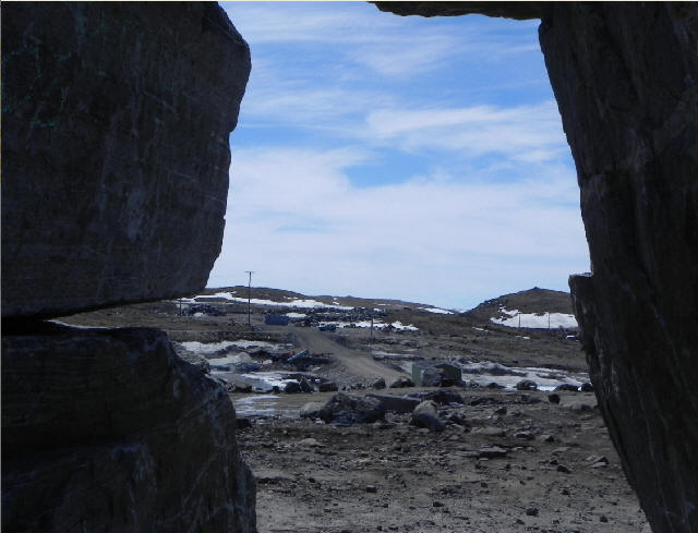 Et je suis rendu à la fin de mon périple ; on peut voir l'inouk shouk au sommet de la montagne.
